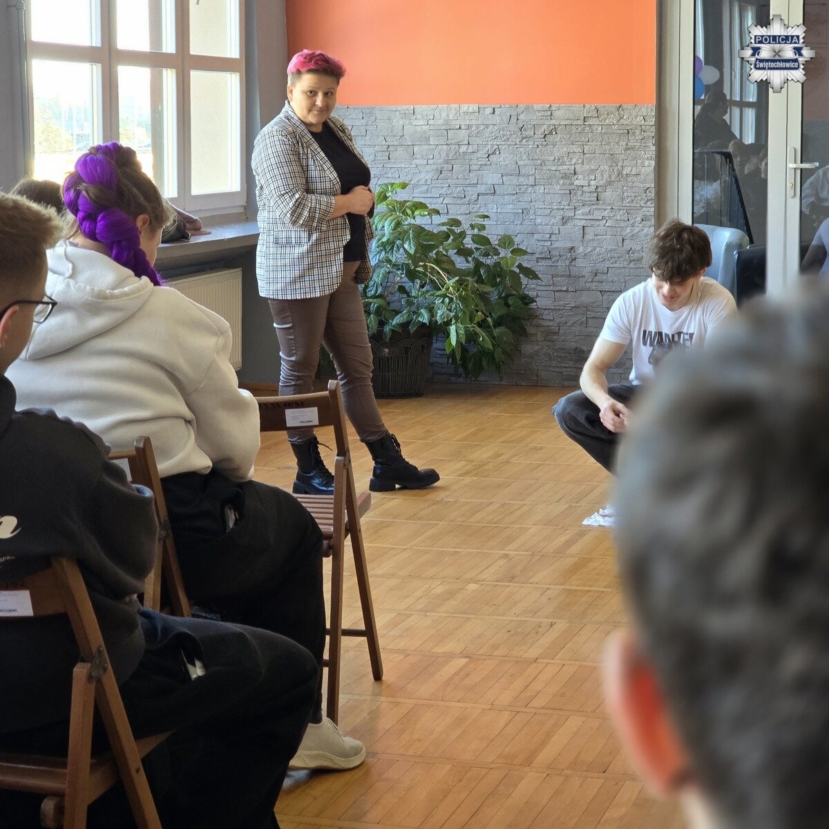 Świętochłowiccy policjanci spotkali się z uczniami klas trzecich i czwartych liceum, by porozmawiać o hejcie, mowie nienawiści i odpowiedzialności karnej młodych ludzi. W spotkaniu uczestniczyła również przedstawicielka Ośrodka Wsparcia „Przystań”, która w symboliczny sposób pokazała, jak słowa potrafią zranić. Uczniowie przekonali się, że konsekwencje przemocy słownej – zwłaszcza w internecie – mogą być nieodwracalne.
