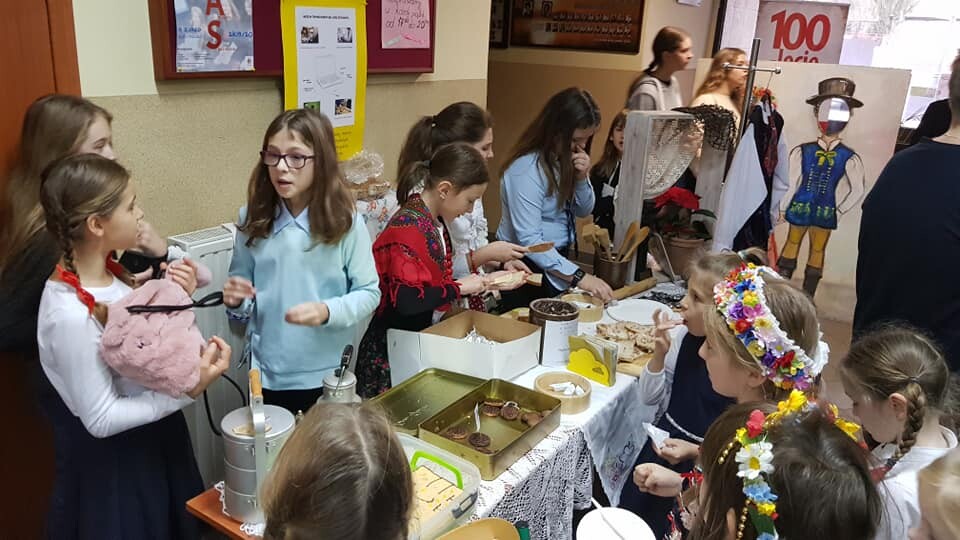 Świętowanie Dnia Śląskiego zwieńczyło wspólne ucztowanie na stoiskach przygotowanych przez poszczególne klasy. Królowały kołocze, szałoty, karminadle, rolady, krupnioki i inne szpecyje.