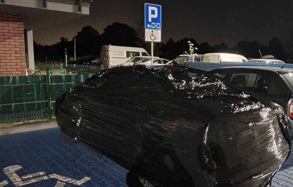 W niedzielę, 24 września sieć obiegło zdjęcie owiniętego folią samochodu osobowego, zajmującego aż 2 miejsca dla niepełnosprawnych. Sąsiedzi posiadacza pojazdu stracili cierpliwość i postanowili dać mu nauczkę.