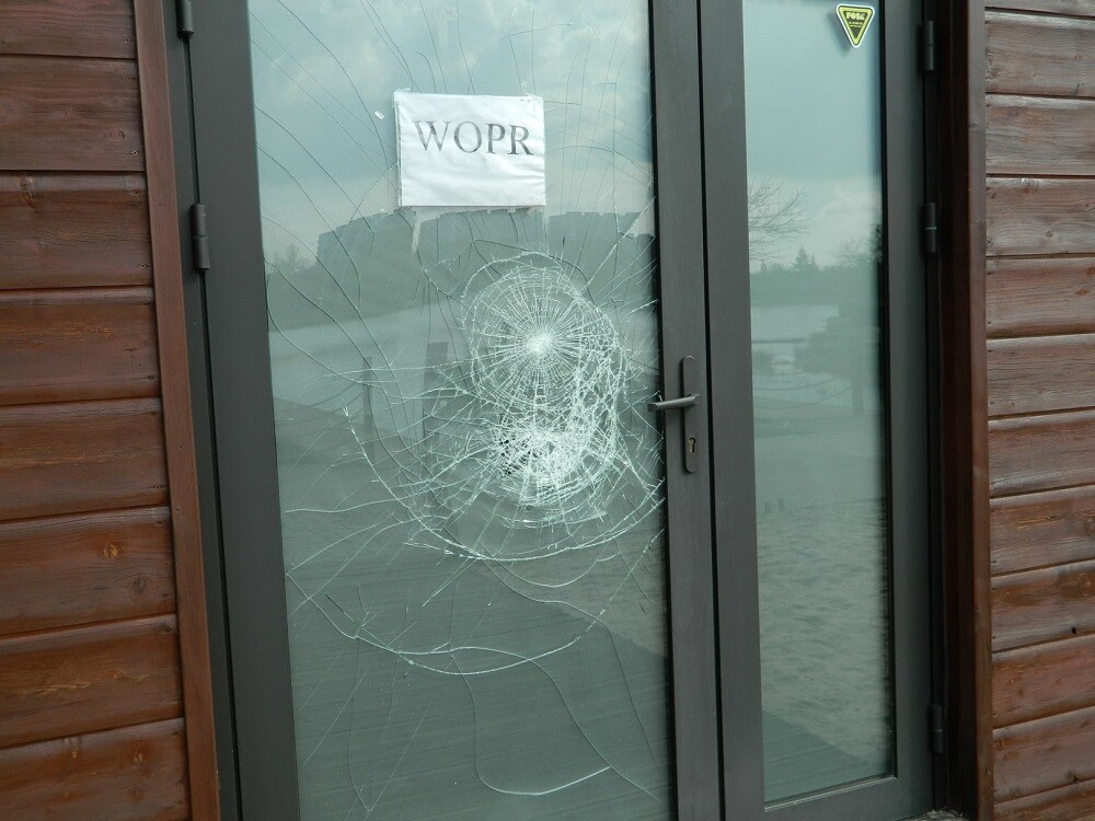 Kolejny raz na terenie Ośrodka Sportu i Rekreacji "Skałka" doszło do dewastacji. Tym razem uszkodzeniu uległy drzwi wejściowe do pomieszczeń przystani kajakowej.