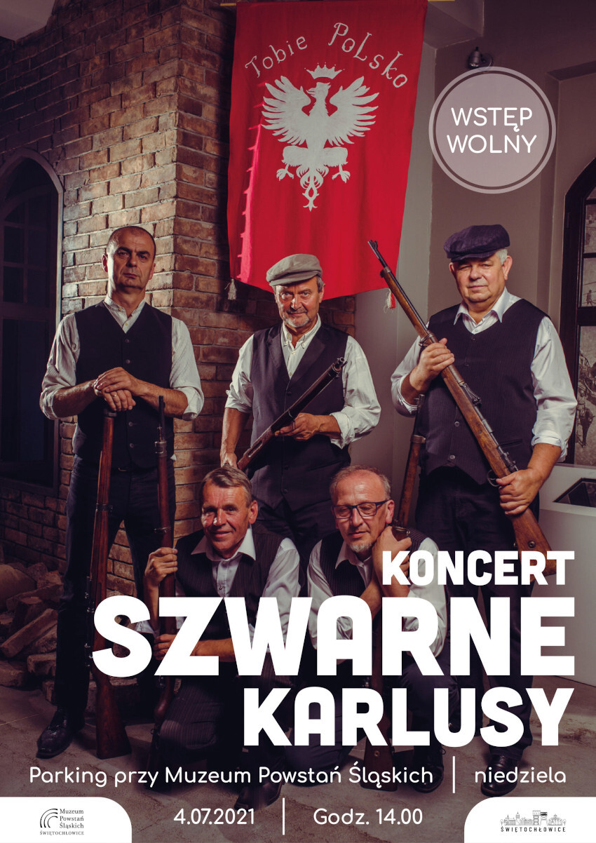 Zapraszamy 4 czerwca (niedziela) na parking Muzeum Powstań Śląskich, gdzie dzień przed 100. rocznicą zakończenia III Powstania Śląskiego odbędzie się koncert pieśni i piosenek powstańców śląskich w wykonaniu zespołu "Szwarne Karlusy".