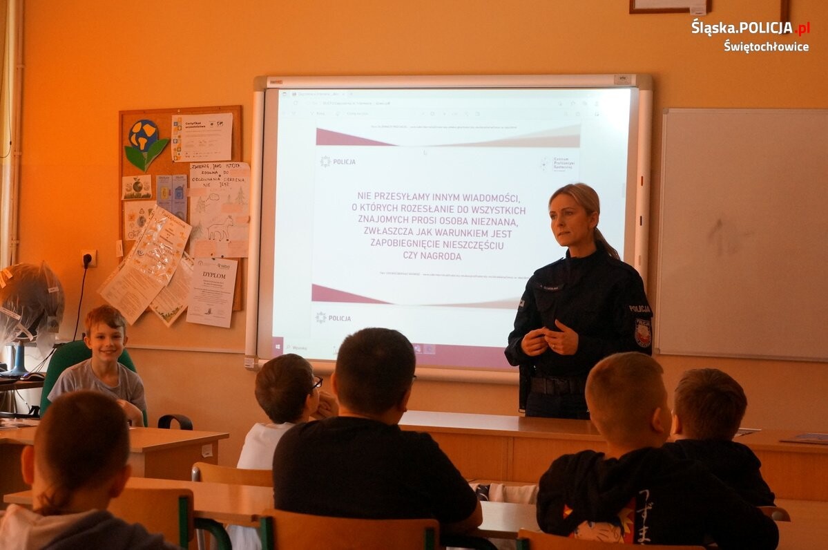 W Szkole Podstawowej nr 8 w Świętochłowicach w ostatnich dniach odbyły się prelekcja dla uczniów klas siódmych i ósmych związane z cyberbezpieczeństwem. O tym, skąd biorą się zagrożenia w internecie, opowiadała mundurowa ze świętochłowickiej komendy.