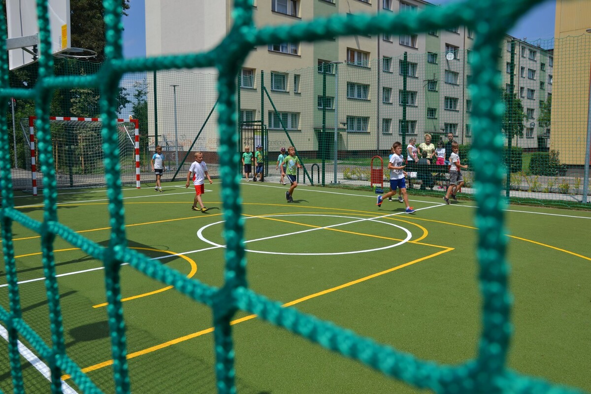 Przestrzeń na Podgórzu została poddana metamorfozie. Stare boisko w nowym wydaniu jest wielofunkcyjne i z nawierzchnią syntetyczną. Można na nim grać m.in. w piłkę nożną i koszykówkę. Pojawiła się też siłownia pod chmurką oraz urządzenia do street workout’u. Rozbudowany oraz ogrodzony został plac zabaw. Powstały również ścieżki spacerowe i elementy małej architektury, m.in. ławki, kosze na śmieci.