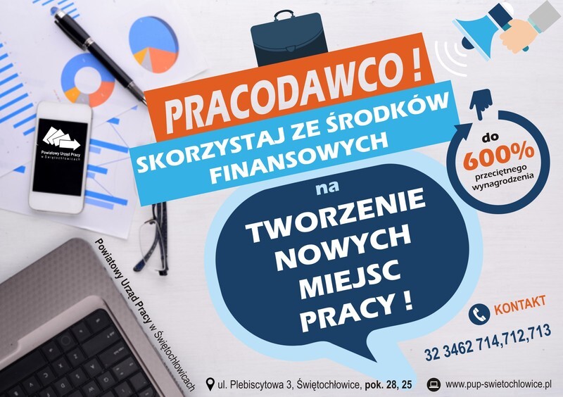 Powiatowy Urząd Pracy w Świętochłowicach dysponuje środkami finansowymi dla pracodawców na refundację kosztów wyposażenia lub doposażenia stanowiska pracy dla skierowanego bezrobotnego.