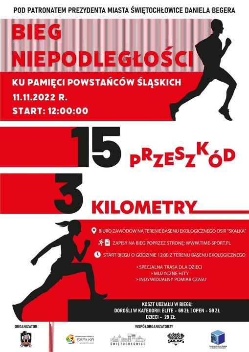 Start biegu odbędzie się w piątek 11 listopada o godz. 12.00 z terenu basenu ekologicznego OSIR Skałka. W ramach 3-kilometrowej trasy, na uczestników biegu będzie czekać 5 różnego rodzaju przeszkód.