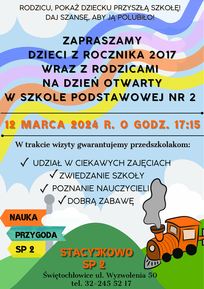 12 marca Szkoła Podstawowa nr 2 w Świętochłowicach zaprasza dzieci z rocznika 2017 w swoje progi!