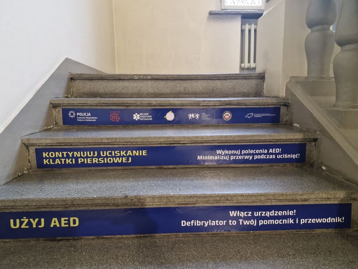 Każdy, kto będzie teraz wchodził po schodach będzie miał możliwość zwiększenia swojej wiedzy w zakresie kroków jakie należy podjąć podczas udzielania pierwszej pomocy.