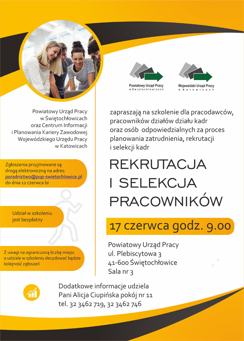 Powiatowy Urząd Pracy w Świętochłowicach oraz Centrum Informacji i Planowania Kariery Zawodowej Wojewódzkiego Urzędu Pracy organizuje szkolenie skierowane do pracodawców, pracowników działów kadr oraz osób odpowiedzialnych za proces planowania zatrudnienia, rekrutacji i selekcji kadr na temat rekrutacji i selekcji pracowników.