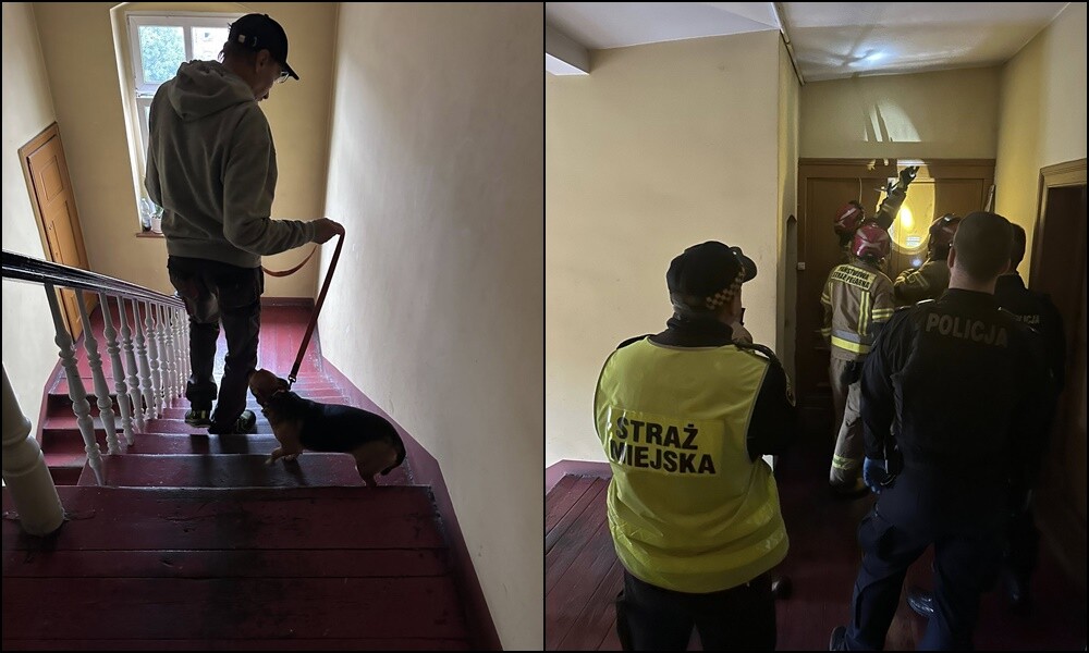 „Po przybyciu na miejsce strażnicy usłyszeli ze środka mieszkania wołanie o pomoc oraz szczekanie psa” – relacjonuje Straż Miejska w Świętochłowicach.