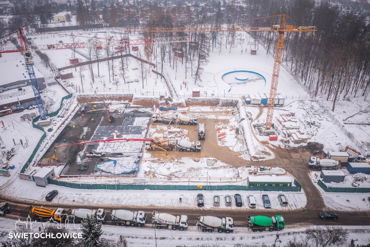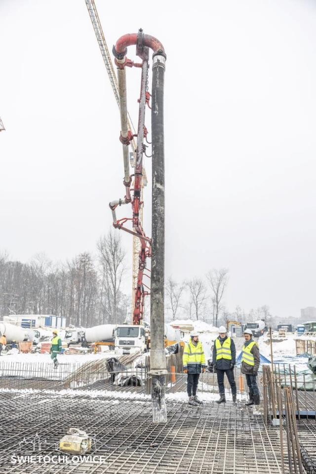 Prace przy budowie hali widowiskowo-sportowej nabrały tempa. Rozpoczęła się wylewka fundamentów, na placu budowy pojawił się drugi żuraw, który pomoże w usprawnieniu budowy, a już od przyszłego tygodnia rusza stawianie filarów i ścian. Na miejscu prowadzonych prac pojawili się prezydent Daniel Beger oraz wiceprezydent miasta Sławomir Pośpiech, aby na własne oczy zobaczyć postępy. Prezydent Świętochłowic w mediach społecznościowych podzielił się z mieszkańcami ciekawostką dotyczącą wylewki fundamentów.