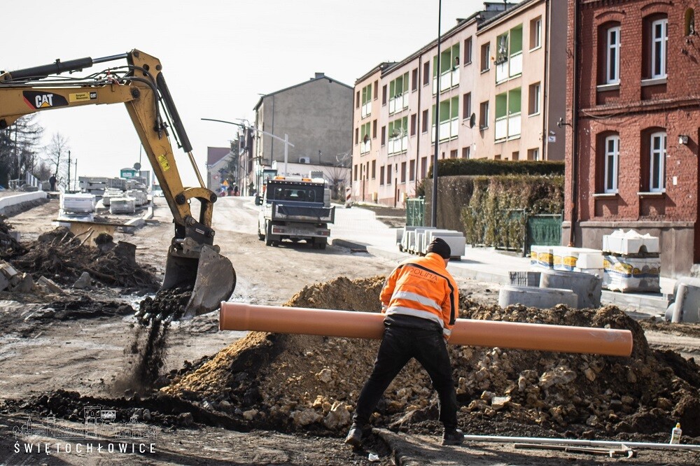 Trwa przebudowa układu komunikacyjnego w ciągu ul. Łagiewnickiej w Świętochłowicach. Inwestycja ta realizowana jest od ul. Barlickiego aż do granicy z Bytomiem. Jak wygląda postęp prac?