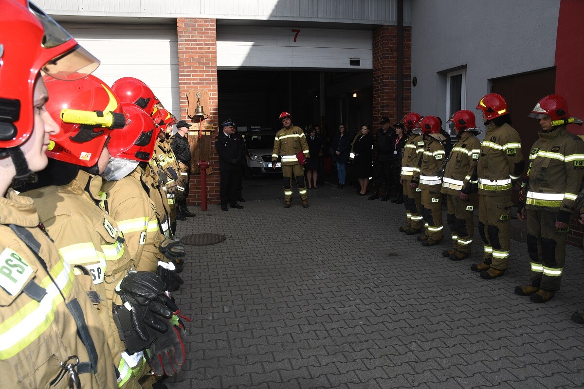 W uroczystej zmianie służby wzięli udział Zastępca Komendanta Miejskiego PSP w Świętochłowicach bryg. Piotr Skóra, a także funkcjonariusze systemu 8-godzinnego, pracownicy cywilni oraz strażacy zdający i przyjmujący służbę w tym dniu.