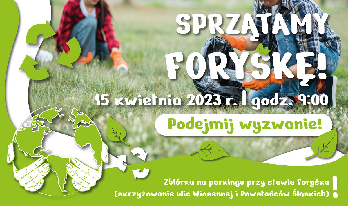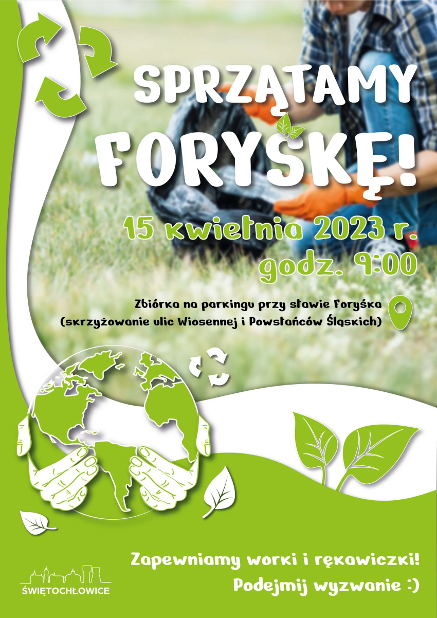 Wszystkich chętnych, którym nie jest obojętna kwestia zaśmiecania naszego miasta, zapraszamy do wspólnego sprzątania terenu wokół stawu Foryśka w Świętochłowicach (Piaśniki, okolice ulic Wiosennej, Powstańców Śl., Mickiewicza).