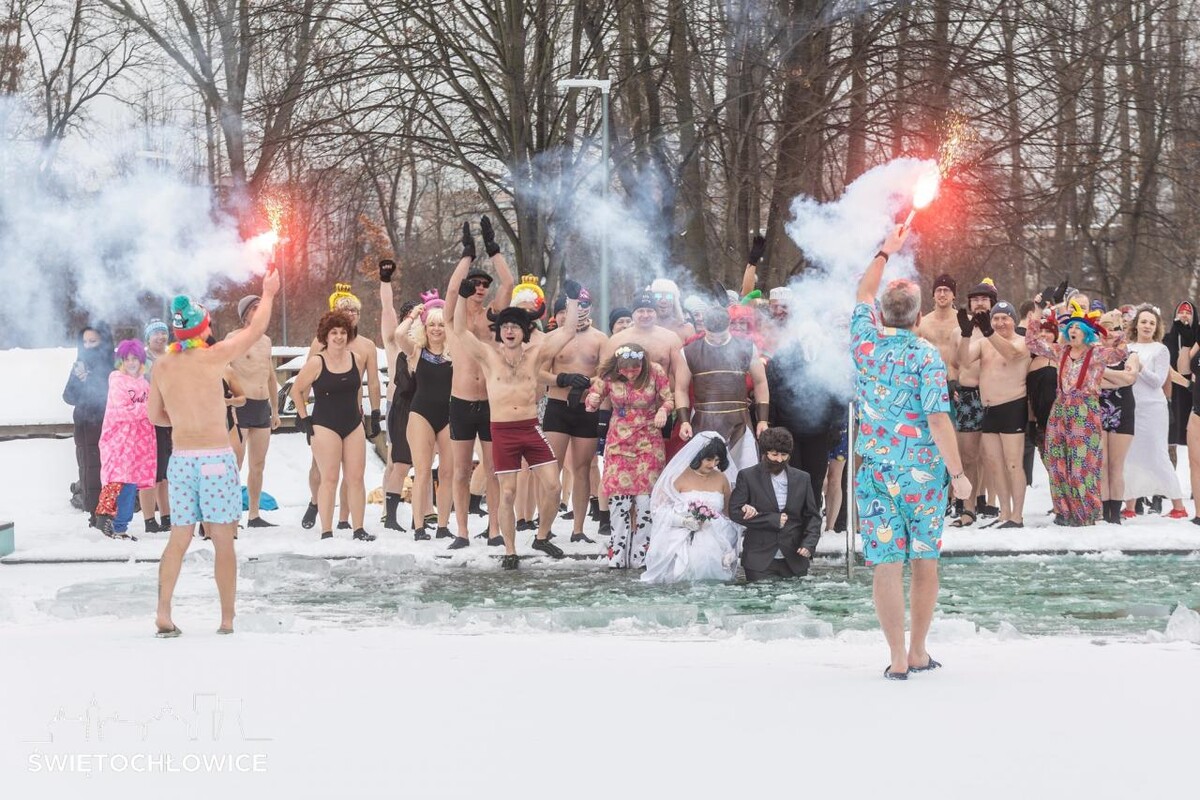 W sobotę 13 stycznia odbyło się coroczne bicie rekordu w ilości osób morsujących jednocześnie organizowane przez Świętochłowicki Klub Morsów Harciole. Osoby, które zebrały się na basenie ekologicznym OSiR Skałka wpisały się na listę obecności i o godzinie 12:00 wspólnie weszły do wody, której temperatura była naprawdę niska! Podobnie jak w przypadku poprzednich edycji i tym razem uczestników obowiązywało zabawne przebranie.