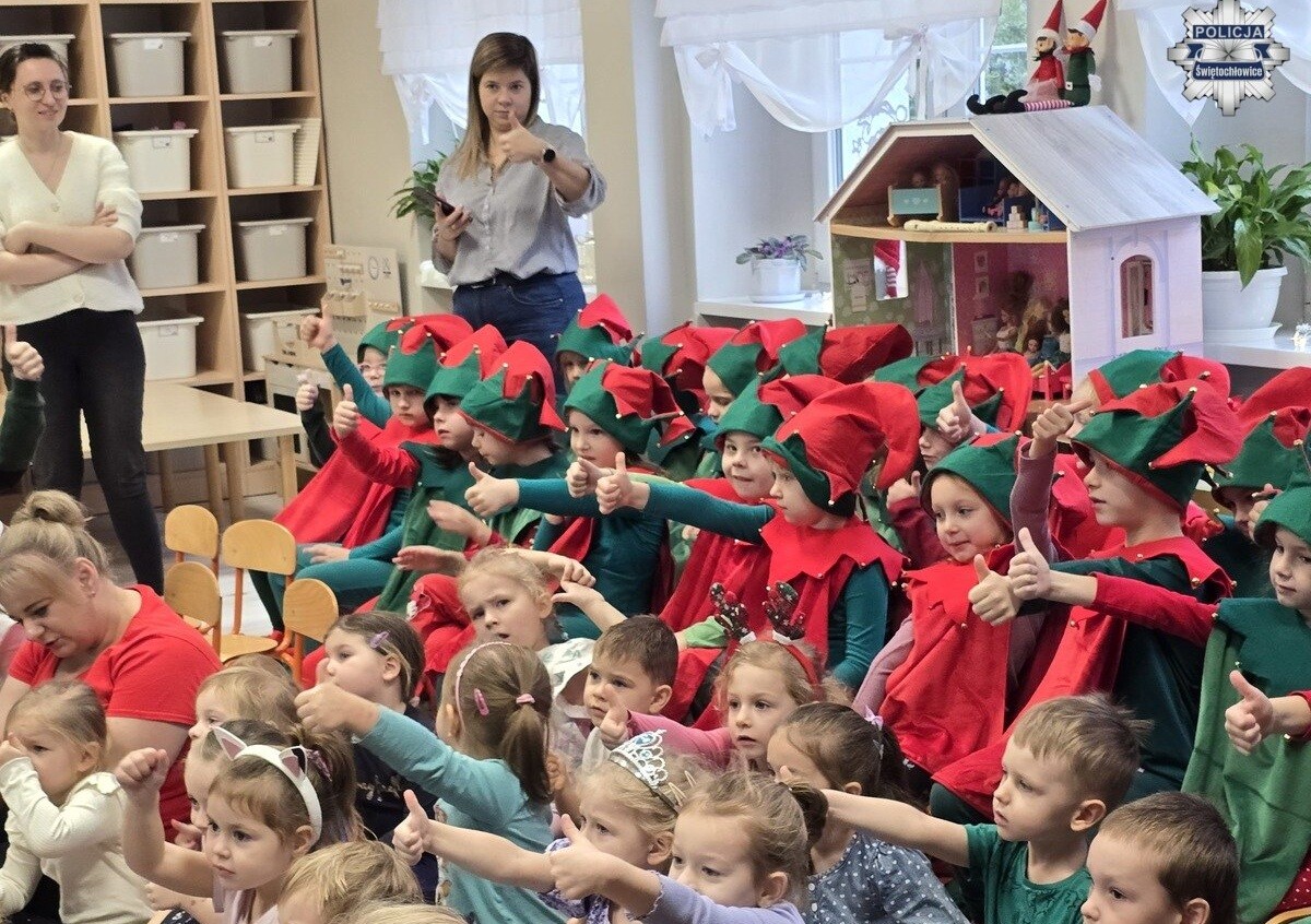 Policjanci ze Świętochłowic wspólnie z przedstawicielami SOW „Przystań” odwiedzili Przedszkole Miejskie numer 4, aby porozmawiać z najmłodszymi o bezpieczeństwie w trakcie zimy.